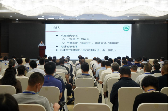 国务院参事、中央农办、农业农村部乡村振兴咨询专家委员会委员、中国农业大学特聘教授、博士生导师何秀荣作了题为“乡村振兴与乡村依法治理”的报告,联系当前乡村现实从乡村治理角度对立法、释法、执法提出了对策方案。
